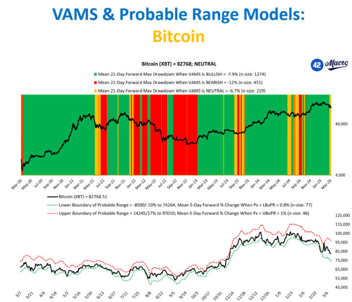 Modelo BTC VAMS do 42 Macro: Banda de baixo (suporte) em 74.2k.
